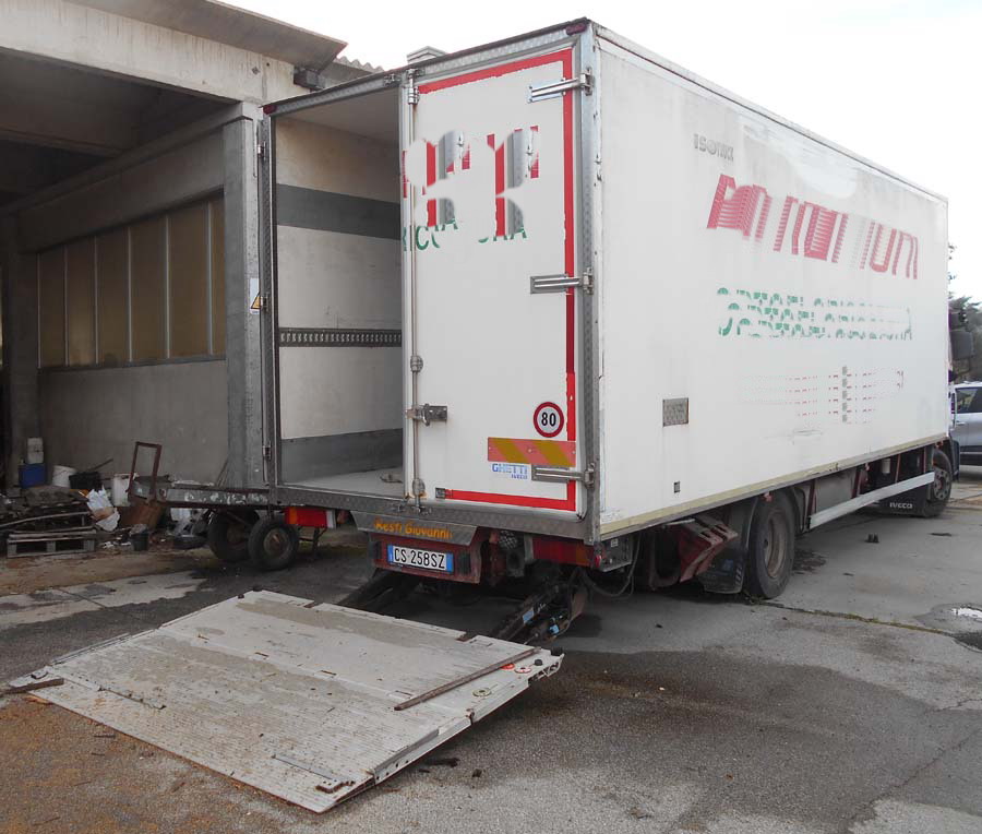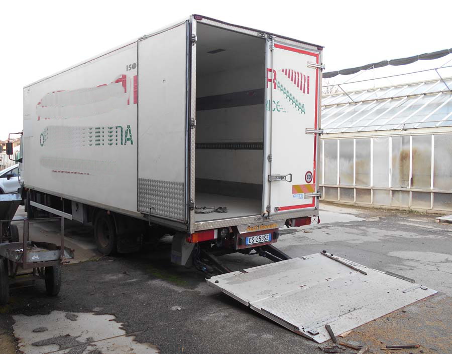 Lotto 1) Autocarro trasporto cose Iveco 120E24 targato CS 258 SZ, immatricolato il 22/03/2005 cc. 5880 alimentazione a gasolio con sponda caricatrice provvista di chiave e libretto di circolazione.